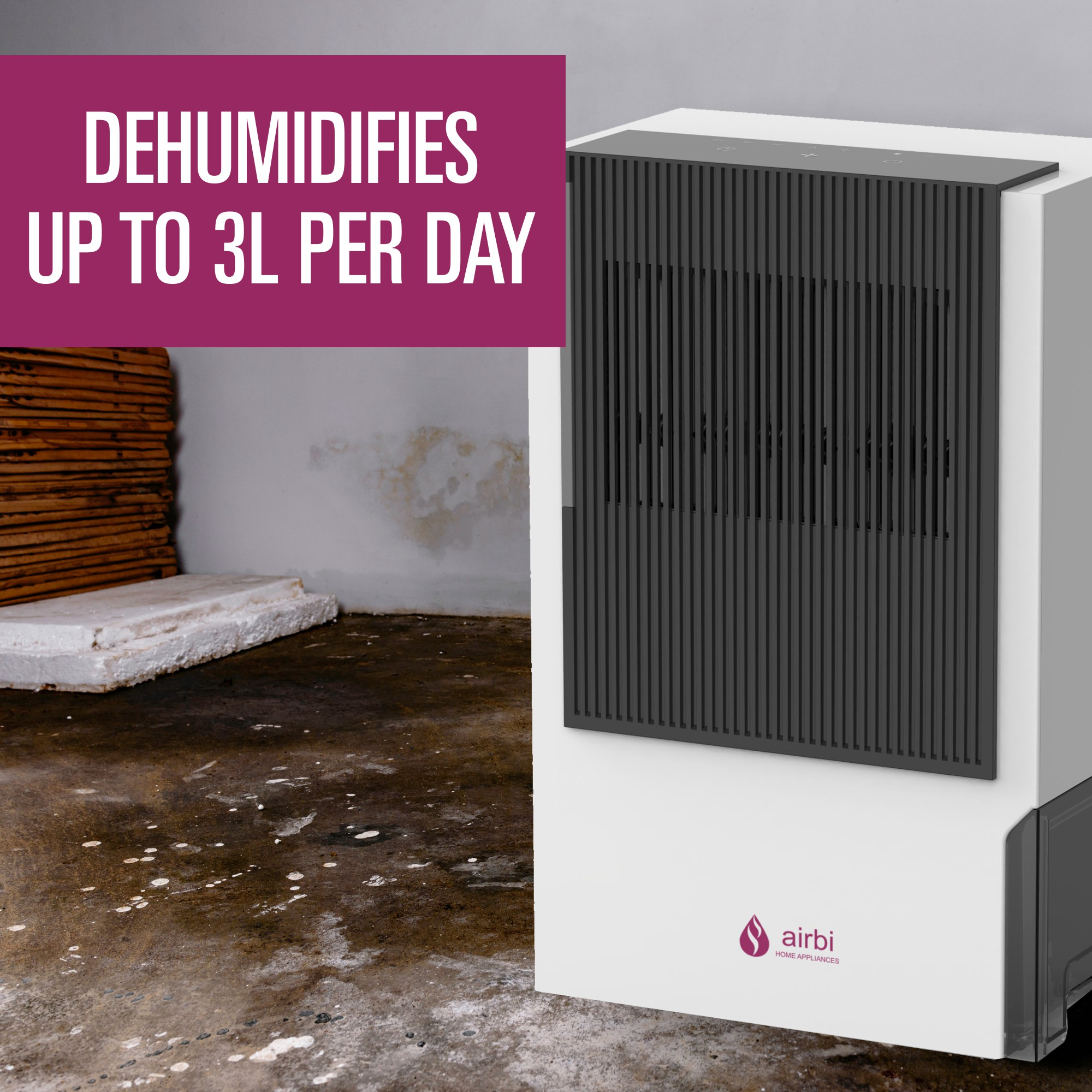 Airbi BLOCK Adsorptionstrockner Luftentfeuchter auch für niedrige Temperaturen Airbi BLOCK Adsorptionstrockner hilft Ihnen bei zu hoher Luftfeuchtigkeit. Dieser Trockenmittel-Lufttrockner kann bis zu 3 Liter Wasser pro Tag aus der Raumluft in Bereichen bis 20 m² entziehen. Dadurch sorgt er nicht nur für eine bessere Luft, sondern verhindert auch die Ausbreitung von gefährlichen Sporen, Schimmelpilzen und unangenehmen Gerüchen. Das entzogene Wasser kann entweder im 2-Liter-Wassertank aufgefangen oder mittels des mitgelieferten Schlauchs direkt abgeleitet werden (permanente Entwässerung). Auch dieser Luftentfeuchter von Airbi zeichnet sich durch seine einfache Handhabung (Touch-Display) aus. Die Zeitschaltuhr (Timer mit 2, 4 oder 8 Stunden) sowie die Ventilatorleistung (2 Stufen) können an der Oberseite des Geräts reguliert werden. BLOCK arbeitet geräuscharm und effizient. Ein Vorfilter am Lufteinlass verhindert das Eindringen von groben Verunreinigungen. Dieser Trockenmittel-Entfeuchter sorgt außerdem für eine schnellere und kostengünstigere Trocknung Ihrer Wäsche (Wäschetrockner-Funktion). BLOCK kann in einem Temperaturbereich von 1 °C bis 40 °C verwendet werden und eignet sich auch für unbeheizte, nicht isolierte Bereiche. Mögliche Anwendungsbereiche sind private oder gewerbliche Räume wie Dachböden, Keller, Werkstätten, Wohnwagen, Ferienhäuser und Souterrains, aber auch Boote. Merkmale: Für Bereiche bis 85 m² Entfeuchtungskapazität: 3Liter pro Tag (20 °C, 60 % relative Luftfeuchtigkeit) Adsorptionstrockner (Desiccant): auch für Bereiche mit niedrigen Temperaturen Einfache, intuitive Bedienung (Touch-Tasten) 2 Leistungsstufen Betriebstemperatur: 0 – 50 °C Vorfilter beim Lufteinlass Geräuscharm: 30 - 45 dB(A) Zeitschaltuhr: 2 / 4 / 8 Stunden Ausschalt-Timer-Funktion Wäschetrockner-Funktion Automatische Neustart-Funktion Kippschutz Wassertank: 2 Liter - einfach zu leeren (Wasserstand ablesbar) Automatische Abschaltung bei vollem Tank Automatische Neustart-Funktion Möglichkeit zur permanenten Entwässerung (Schlauch im Lieferumfang enthalten) Einfacher Transport: geringes Gewicht (3,7 kg) und Tragegriff Abmessungen: (L x B x H): 25,4 x 15,8 x 39,5 cm Kompakt, zuverlässig und energieeffizient – die ideale Lösung gegen Feuchtigkeit und Schimmel.