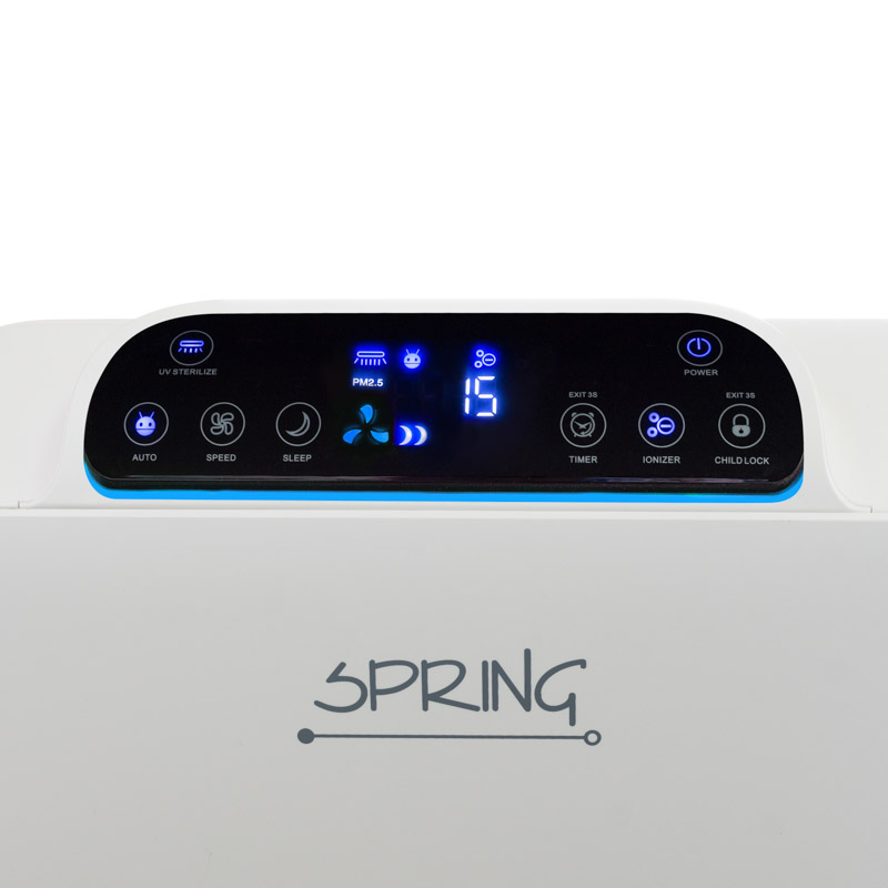 Airbi SPRING – HEPA Luftreiniger mit Ionisator & UV-Lampe Der Airbi SPRING Luftreiniger hilft Personen mit Allergien und Atemwegserkrankungen dabei um wieder tief durchatmen zu können und frische, gesunde Luft durch den Körper strömen zu lassen. Dieser leistungsstarke und flüsterleise HEPA-Luftreiniger filtert effektiv Staubpartikel, Pollen, unangenehme Gerüche oder chemische Gase in Räumen bis 50 m², in privaten oder gewerblichen Bereichen. Der SPRING-Luftreiniger übertrifft seine Konkurrenten auf dem Markt mit seinen zahlreichen Betriebsfunktionen wie Nacht-Modus, Zeitschaltuhr (Timer), Kindersicherung, Ionisator (Negativ-Ionen-Generator) und dem zuschaltbaren UV-Licht. Der größte Vorteil des Luftreinigers ist sein automatischer Betriebsmodus (SMART-Modus), der mithilfe der eingebauten Luftqualitätssensoren die Luftqualität überwacht und automatisch die Lüftergeschwindigkeit anpasst. Der ultraleise Motor des Airbi SPRING hat einen Geräuschpegel von nur 28 d(B). Zur weiteren Ausstattung zählt ein sehr präziser Partikelsensor (Geruchs- und Verschmutzungsdetektor), der Partikel bis zu einer Größe von 2,5 µm erkennt. Der Airbi SPRING ist ein 2-in-1 Gerät: Luftreiniger und Luftentkeimer und die einzelnen Funktionen werden auf einem übersichtlichen und großen LED-Display angezeigt. Die Bedienung des Airbi ist kinderleicht und erfolgt über die Touch-Tasten auf dem Display oder über die mitgelieferte Fernbedienung. Das 7-Stufen-Filtersystem des Airbi SPRING Vorfilter - Hauptfunktion des waschbaren Filters besteht darin, grobe Staubpartikel wie z. B. Tierhaare aufzunehmen. Hierdurch wird auch die Lebensdauer der anderen Filter verlängert. Katalysatorfilter - entfernt Ammoniak, Benzol, TVOC und anderen schädlichen Gase. Aktivkohlefilter - absorbiert Gerüche wie beispielsweise Formaldehyd. Antibakterieller Filter - filtert feinste Staubpartikel und Mikroorganismen (entfernt Bakterien & beugt Schimmel vor) Echter HEPA-Filter – filtert Partikel mit 0,1 μm und hat einen Wirkungsgrad von 99,9 %(entfernt z. B. Staub, Pollen, Rauch oder tierische Allergene) UV-Lampe - unterstützt die Luftreinigung. Das Licht der UV-Lampe mit einer Wellenlänge von 365 nm zerstört die in der Luft befindliche Mikroorganismen, einschließlich Bakterien und Viren. Ionisator - der Generator erzeugt eine große Menge negativer Ionen, die in der Luft befindlichen kleine Verunreinigungen binden. Ein sehr nützliches Hilfsmittel ist das Kontrollsystem für den rechtzeitigen Filterwechsel. Anwendungsbereiche sind Wohnzimmer, Schlafzimmer, Kinderzimmer, Büro oder andere Bereiche bis 50 m². Merkmale: Geeignet für Räume bis 50 m² Leistung 320 m³/h Vier verschiedenen Betriebsmodi Moderner Lasersensor: misst Partikel bis zu 2,5 µm 7-faches Filtersystem (Mehrfachfiltersystem) Filterwechsel-Kontrollsystem HEPA-Filter & Aktivkohle-Filter Leistungsstarker Ionisator UV-Lampe zur Luftentkeimung (zuschaltbar) Übersichtliches LED-Display (Farbe) Auto-Modus Fernbedienung Nacht-Modus Kindersicherung Zeitschaltuhr / automatische Luftreinigung Geräuscharm (sehr leiser Motor) - 28 dB(A) integrierter Luftqualitätssensor mit farbiger Luftqualitätsanzeige