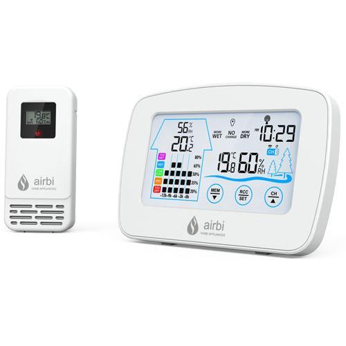 Halten Sie die Luftqualität unter Kontrolle. Der Airbi Control Thermo Hygrometer misst Raumtemperatur und Luftfeuchtigkeit und aus diesem Grund ist dieses Airbi Control mit einem drahtlosen Sensor ausgestattet und Sie können die Luftqualität draußen oder in anderen Räumen überwachen. Der Airbi Control verfügt über ganz normale Funktionen wie eine grafische Darstellung der Luftqualität oder Lüftungstipps. Das Paket umfasst eine Basisstation und einen drahtlosen Temperatur- und Feuchtigkeitssensor.